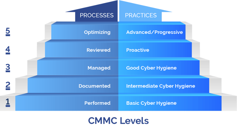 Organizations looking to become CMMC compliant are assessed on three maturity levels:
