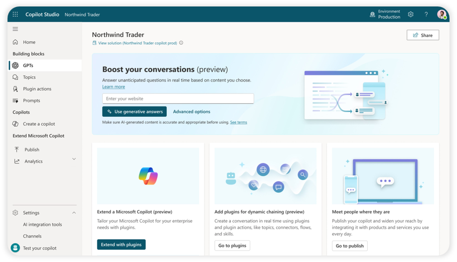 With Copilot Studio, you have a variety of conversational tools at your fingertips: