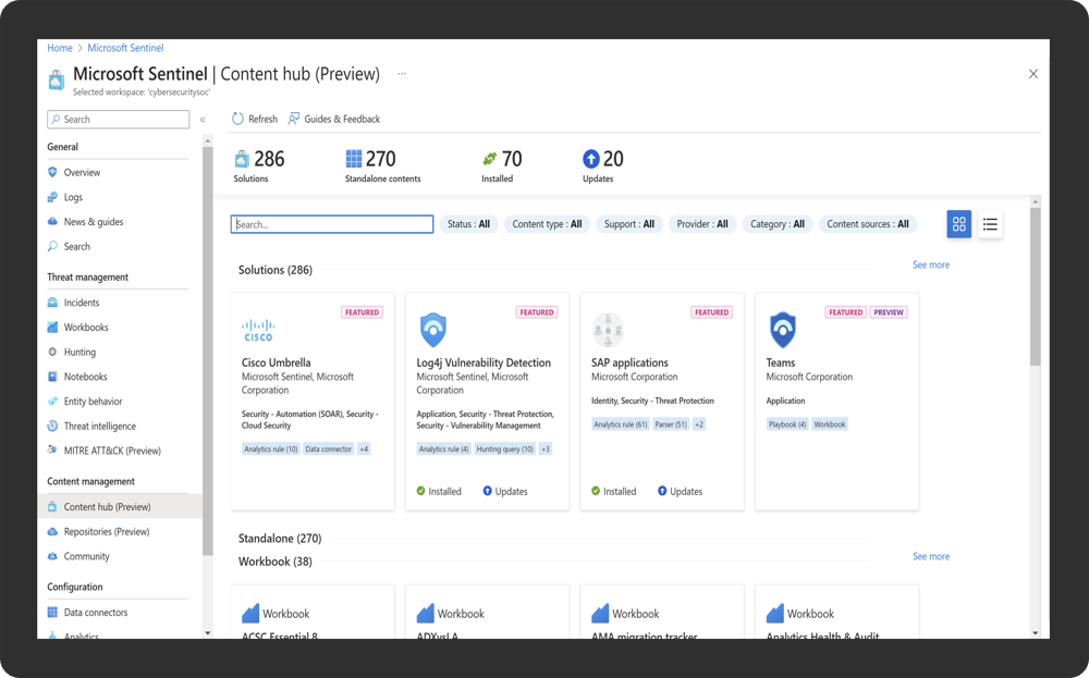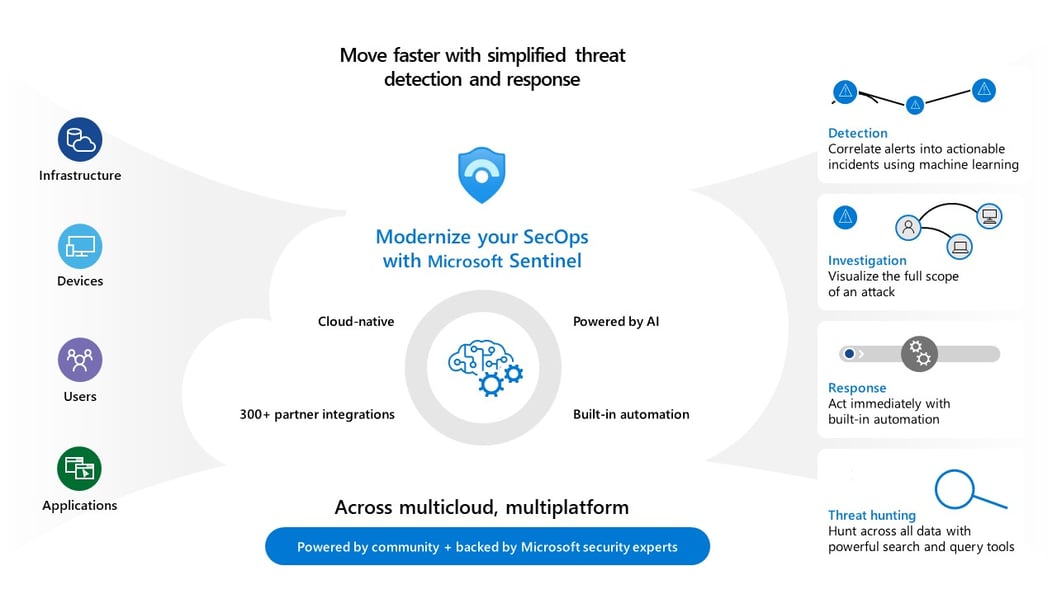 Microsoft Sentinel is a cloud-native SIEM solution powered by AI, automation, and Microsoft’s deep understanding of the threat landscape, empowering defenders to hunt and resolve critical threats quickly and efficiently. Our unified security information and event management (SIEM), security orchestration, automation, and response (SOAR), user and entity behavior analytics (UEBA), and threat intelligence (TI) solution is built to support modern security operations, in a simplified, scalable, and accelerated manner, optimized for the customers unique environment.